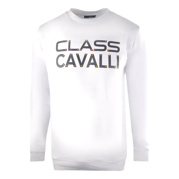 Cavalli Class groot vet logo-ontwerp wit sweatshirt Prijzen