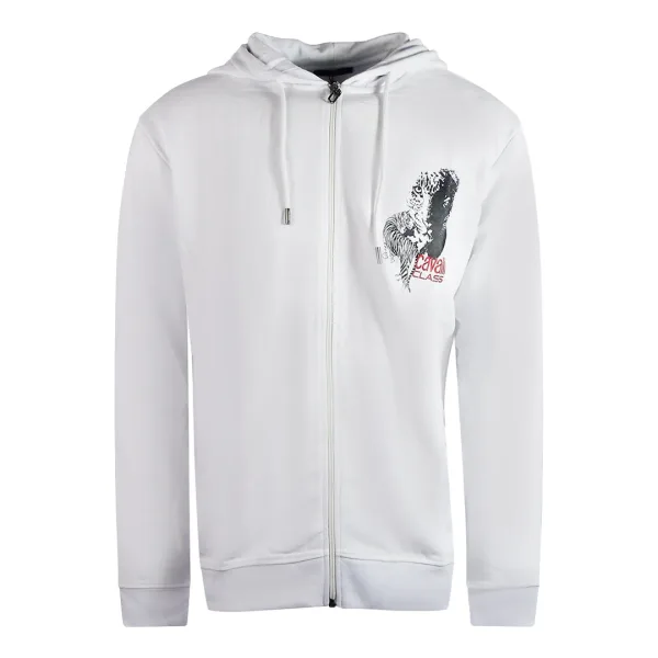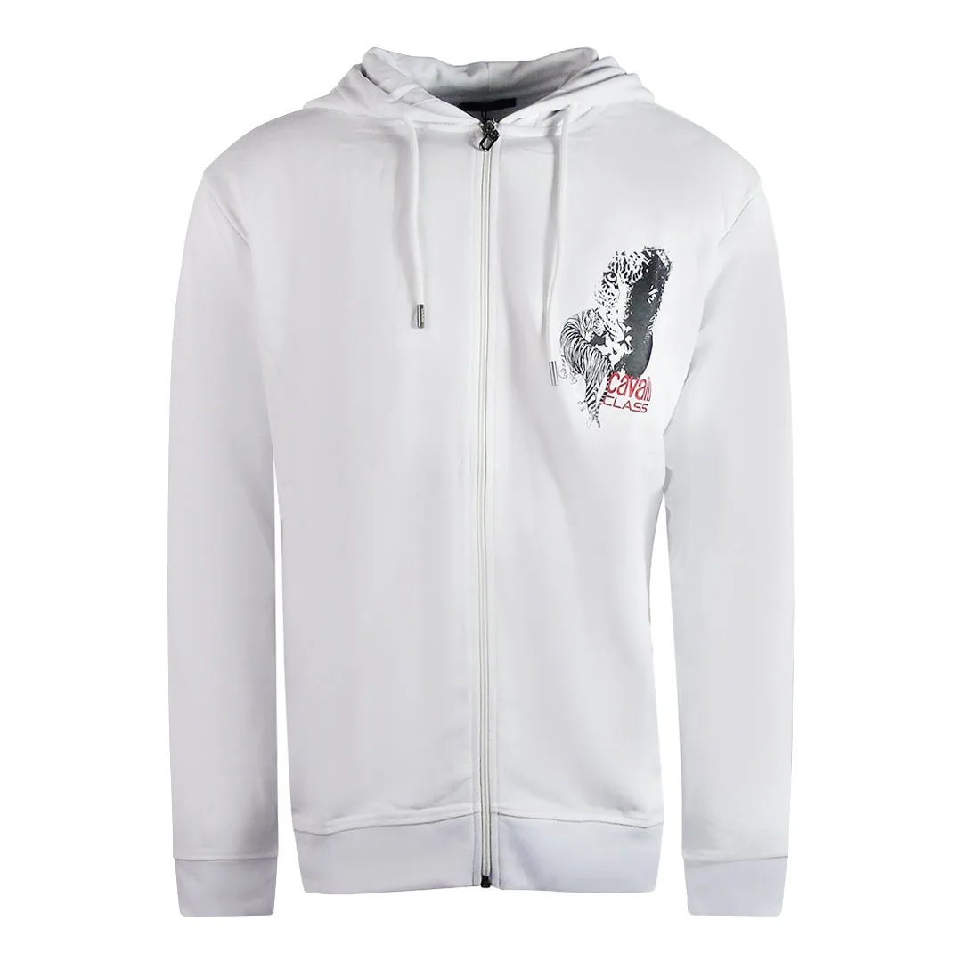 Cavalli Class grote tijgerontwerp witte hoodie met rits
