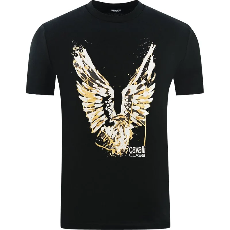 Cavalli Class Large Golden Eagle Logo Black T-Shirt