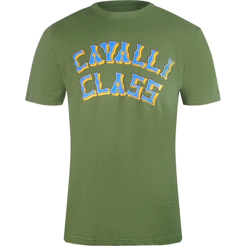 Cavalli Class Layered Logo Militair Groen Tshirt