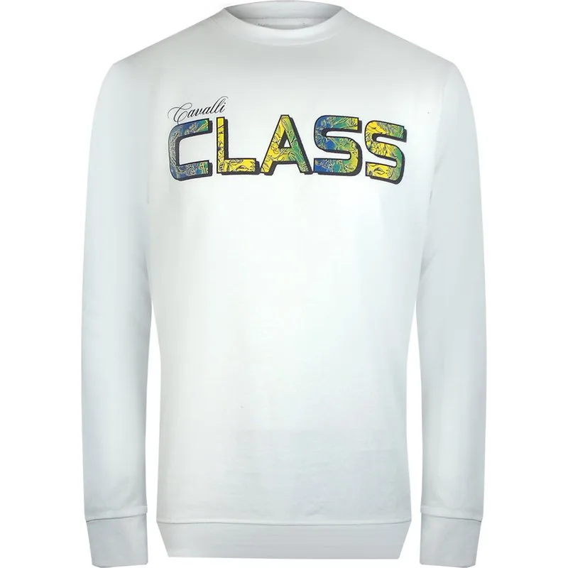 Cavalli Class Levendige Bloemenlogo Offwhite Sweatshirt