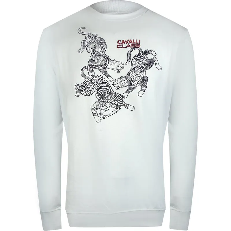 Cavalli Class Paisley Leopard Design Off White Sweatshirt