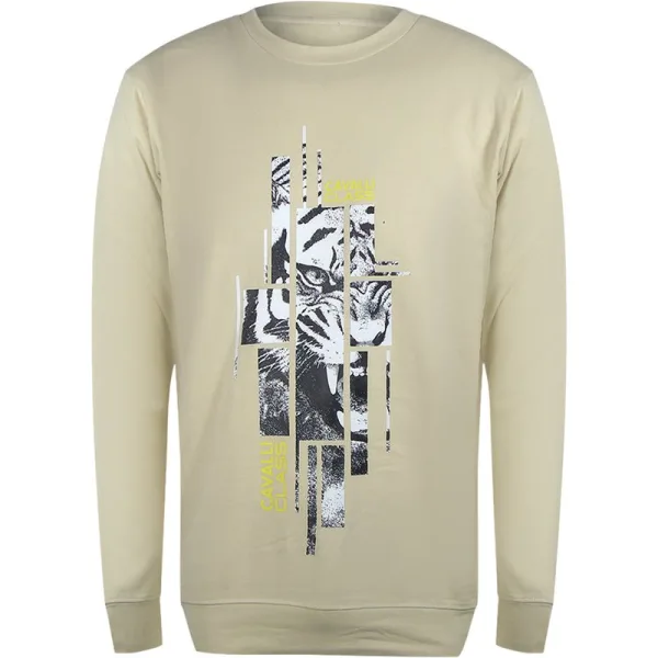 Cavalli Class Splintered Tiger Logo Beige Sweatshirt Prijzen