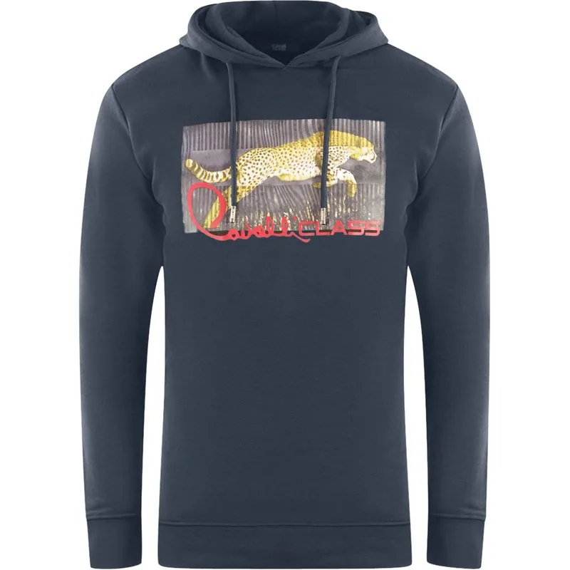 Cavalli Class Sprinting Leopard Logo Navy Blauw Hoodie Prijzen