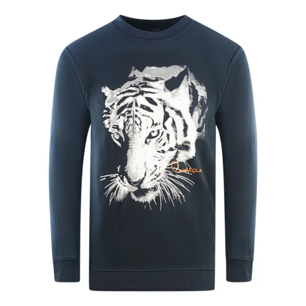Cavalli Class Tiger Silhouet Logo Marinesblauwe Sweatshirt