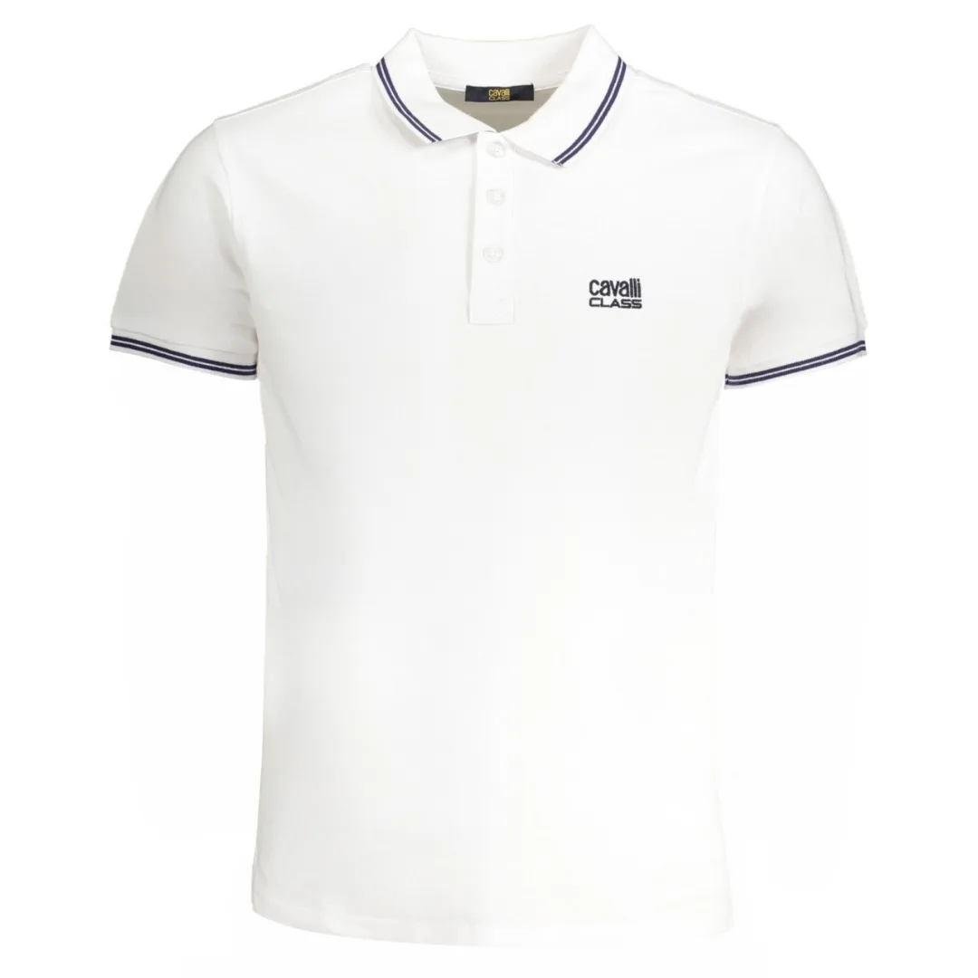 Blijf comfortabel en modieus in dit Cavalli Class polo shirt. Kraag, Korte Mouwen, 100% Katoen, Normale Pasvorm, Valt Echt Op Maat, Witte Polo