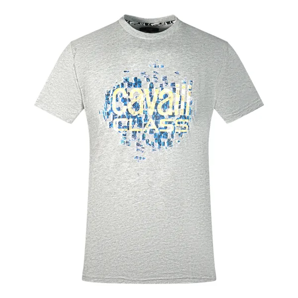Cavalli Class Gradint Schalen Design Logo Grijze T-Shirt