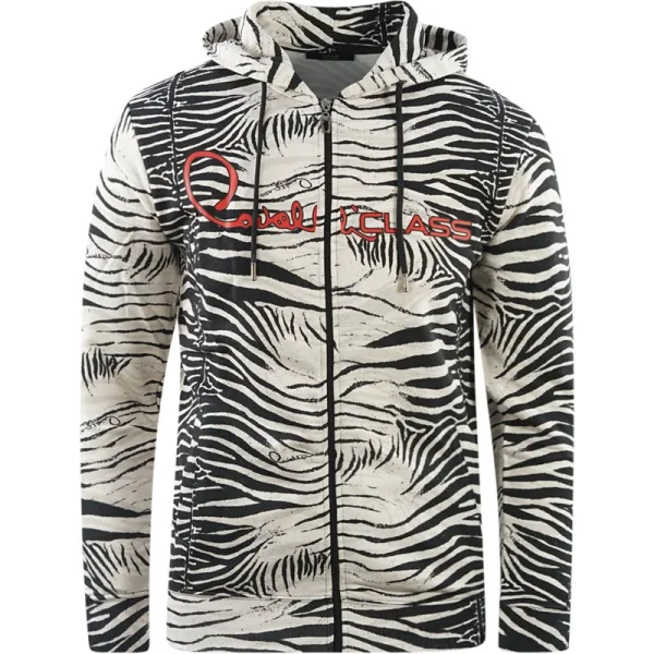 Cavalli Class Zebra Print Rits Hoodie – Zwart Prijzen