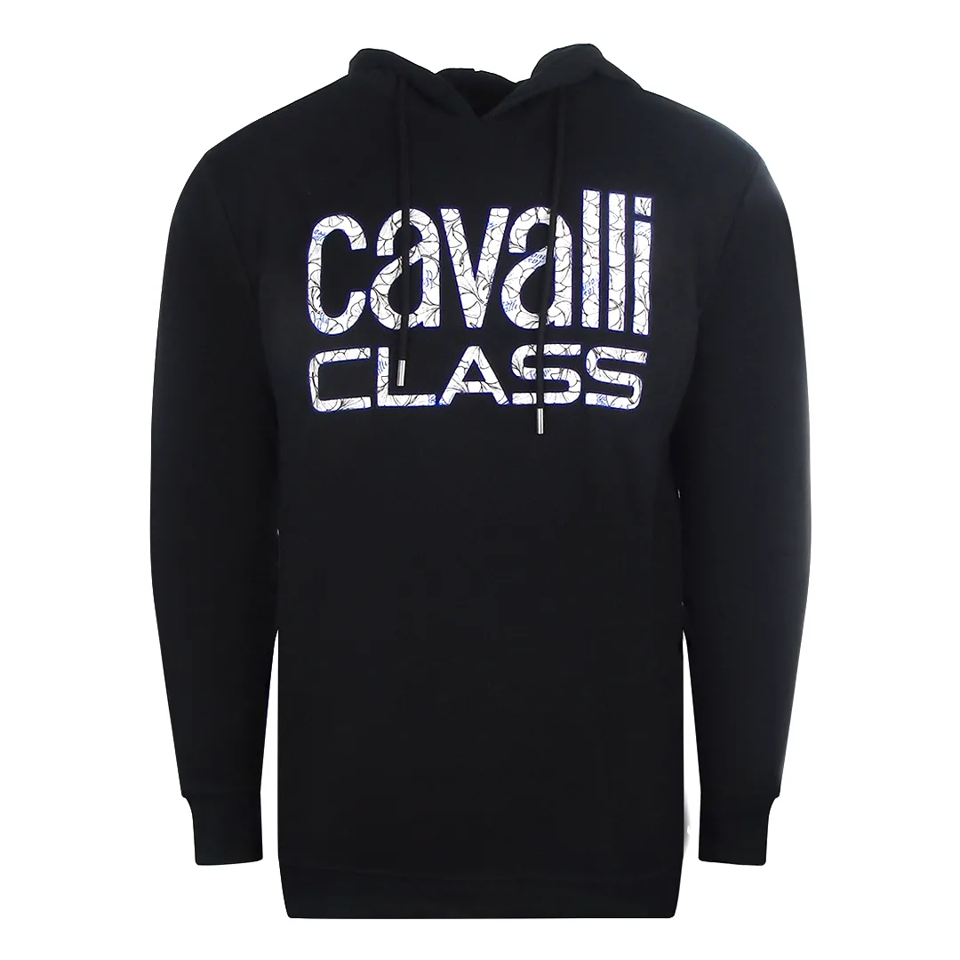 Cavalli Class zwarte hoodie met bloemenlogo Prijzen