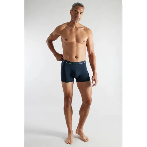 Deze donkerblauwe CECEBA boxershort heren in handige duoverpakking is een praktische basis voor elke dag. De shorts zijn gemaakt van zachte bamboevezel met elastaan, waardoor de stof soepel met je lichaam meebeweegt. Door de effen kleur ogen ze rustig en tijdloos, passend onder verschillende outfits. CECEBA staat bekend om comfortabele modellen, ook in grote maten, zodat je kunt rekenen op een betrouwbare pasvorm.Zacht materiaal en praktische details Set van twee boxershorts, handig als basisvoorraad in je kledingkast Gemaakt van bamboevezel met elastaan voor een zachte, soepele touch Effen donkerblauwe kleur die niet doorschijnt onder je kleding Elastische tailleband voor een stevige, maar comfortabele aansluiting Geschikt voor grote maten, met aandacht voor ruimte en draagcomfort Machinewasbaar, zodat je ze eenvoudig met de rest van je was meedraait Niet drogen in de droogtrommel, zo blijft de stof langer mooiComfort voor elke dagDeze boxershorts zijn ontworpen voor dagelijks gebruik. De zachte stof voelt soepel aan op de huid en de stretch zorgt dat alles goed op zijn plek blijft, ook tijdens een drukke dag. De langere pijpjes sluiten goed aan en beperken wrijving tussen de bovenbenen.CECEBA, specialist in herenondergoedCECEBA richt zich al jarenlang op prettig zittend herenondergoed met een betrouwbare pasvorm. De modellen worden ontworpen met oog voor comfort, van de tailleband tot de naden. Zo kies je met CECEBA voor ondermode waarop je elke dag opnieuw kunt vertrouwen.Een comfortabele, praktische basis voor je garderobe die de hele dag goed blijft zitten.