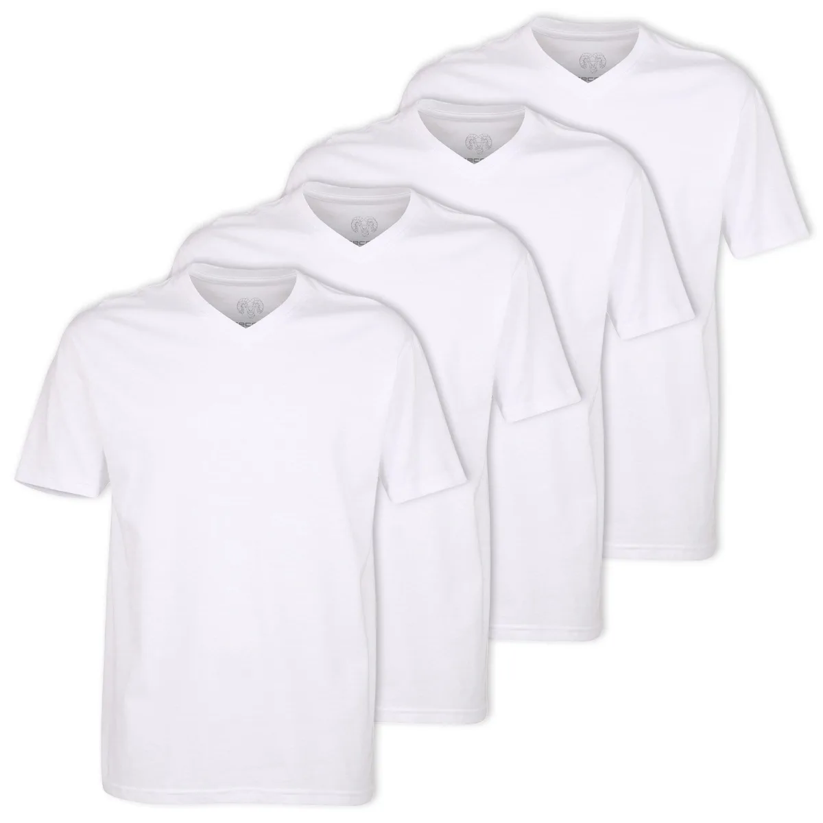 Basic T-shirts voor heren van het merk CECEBA. Shirts met korte mouwen en een V-hals, in een handige verpakking van 4 stuks. Voorgevormde pasvorm voor een comfortabele pasvorm rond de buik.