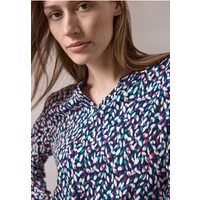 De bedrukte blouse van CECIL voor dames is een stijlvolle blikvanger. De blouse van viscose heeft een openvallende halslijn met bandjes en lange mouwen met manchetten en knopen. Een afgeronde zoom en de zachte viscose ronden het ontwerp af.