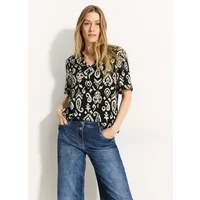 CECIL blouseshirt met sierpatroon, halslijn met split, korte turn-up-mouwen, elastische band, zachte viscose-kwaliteit