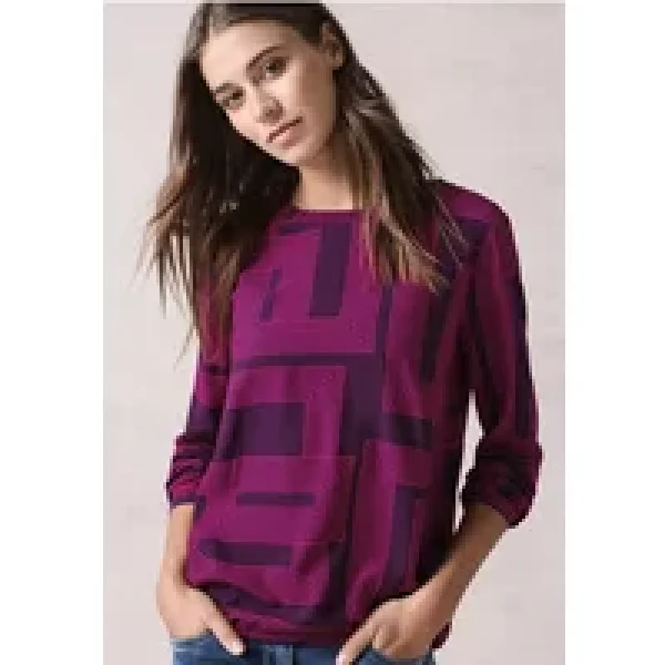 De blouse met smokdetail van CECIL voor dames is gemaakt van zachte viscose. De blouse heeft een elastische zoom, een ronde hals met smokdetail en lange mouwen. Een grafisch patroon rondt het ontwerp af.