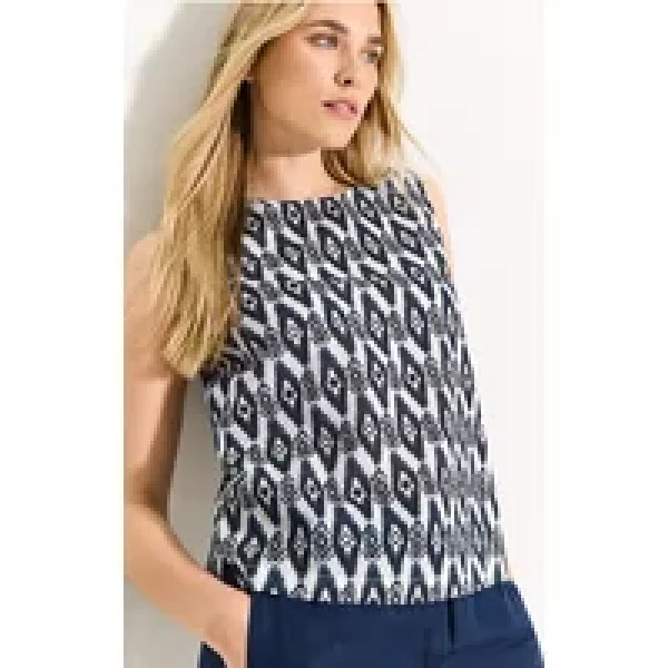CECIL dames blousetop met print, mouwloos, ronde hals, minimalistisch patroon, puur katoen, knoop en split bij de hals