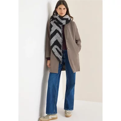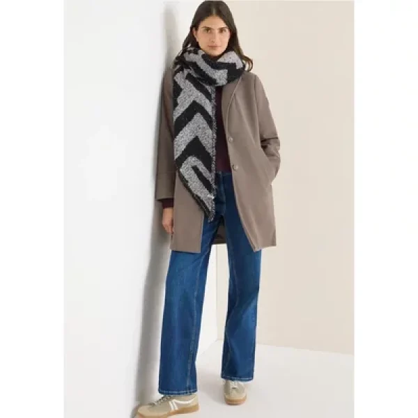 De driehoekige bouclé sjaal van CECIL voor dames combineert een grafisch patroon met fijne franjes en een comfortabele pasvorm. De zachte textuur maakt het een knusse metgezel voor frisse dagen. Een stijlvolle blikvanger voor je herfst- en wintergarderobe.