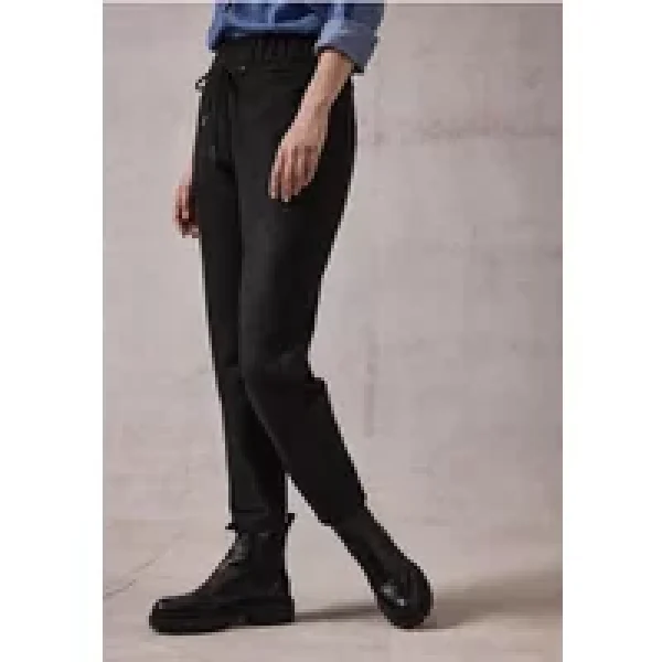 Deze broek met lederlook heeft een casual pasvorm, een tailleband halverwege de taille en slanke pijpen. Deze comfortabele joggingbroek van CECIL voor dames is een modieuze blikvanger. Andere highlights zijn de elastische tailleband met trekkoord, de steekzakken en de materiaalmix met stretchgehalte. De perfecte combinatie van een moderne look en casual comfort.