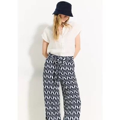 CECIL damesbroek met print, comfortabele loose fit damesbroek, hoge taille met wijde pijpen, elastische tailleband en steekzakken, decoratieve stoffen riem, zachte viscose stof, style Neele
