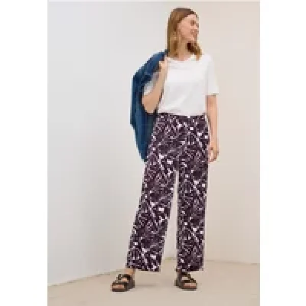 De gedessineerde crêpe broek in het model Neele van CECIL voor dames geeft je outfit een zomerse lichtheid met zijn luchtige snit en Wide Legs. De Stretch tailleband zorgt voor een comfortabele pasvorm, terwijl de zachte viscose aangenaam aanvoelt op de huid. Praktische steekzakken ronden de look af.