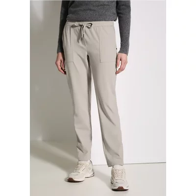 Deze damesbroek van CECIL in Casual Fit met een middellange taille en slanke pijpen zorgt voor een comfortabele pasvorm. De tailleband met trekkoord biedt optimaal comfort. Ideaal voor op reis, dankzij de stretchstof bijzonder onderhoudsvriendelijk en kreukherstellend.