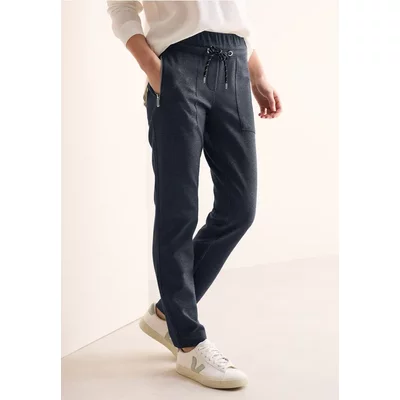 Deze casual broek van CECIL voor dames heeft een middelhoge taille, slanke pijpen en steekzakken met ritssluiting. De elastische tailleband met trekkoord en de materiaalmix met stretch maken van de Tracey-stijl broek de ideale partner voor casual alledaagse looks.
