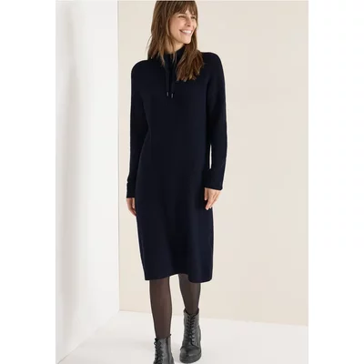 Deze knielange jurk van CECIL heeft een knusse geribbelde textuur en een sportieve opstaande kraag met een aantrekkoord. De zachte viscosemix voelt aangenaam aan op de huid en zorgt voor optimaal draagcomfort. Met zijn eenvoudige look en lange mouwen is het een veelzijdig stuk voor ongecompliceerde outfits.