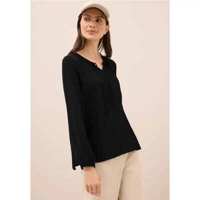 Met zijn fijne crêpestructuur en zachte viscose heeft deze blouse van CECIL een stijlvolle en ongecompliceerde look. De gespleten hals met bandjes en de afgeronde zoom geven hem een vrouwelijke look. Lichtgewicht lange mouwen voor je alledaagse stijl.