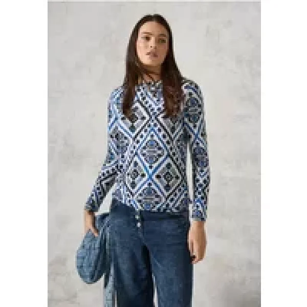 Dit fluffy shirt met lange mouwen van CECIL voor dames met een grafisch patroon en boothals is bijzonder behaaglijk. De elastische zoom en de viscosemix met stretch zorgen voor een comfortabele pasvorm. Ideaal voor ontspannen dagen.