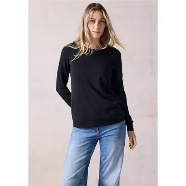 CECIL damestrui in fijn breisel, Damestrui, Ronde hals met rolzoom, Lange mouwen met manchetten, Gebreid detail op de schouder, Zachte katoenmix