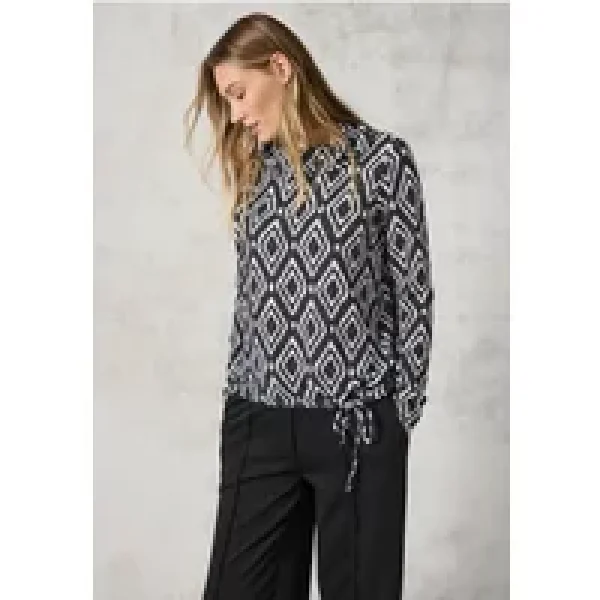 Dit fluffy shirt met print van CECIL voor dames heeft een grote kraag en een tunnelkoord in de zoom. De viscosemix met stretch maakt het zacht en comfortabel. Met zijn grafische print zet het de toon op gezellige dagen.