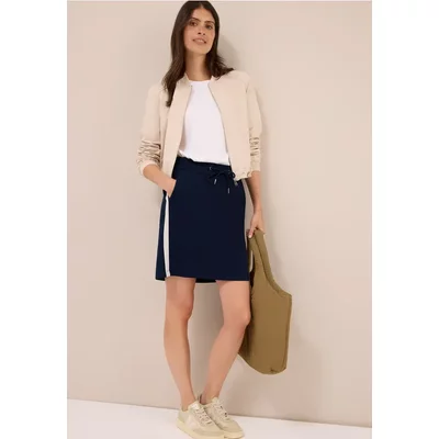 De jogg rok van CECIL voor dames combineert een sportieve look met comfortabele details. Een elastische tailleband met aantrekkoord en steekzakken zorgen voor comfort, terwijl de galonstrepen de knielange rok een dynamische touch geven. Ideaal voor ontspannen vrijetijdsoutfits met stijl.