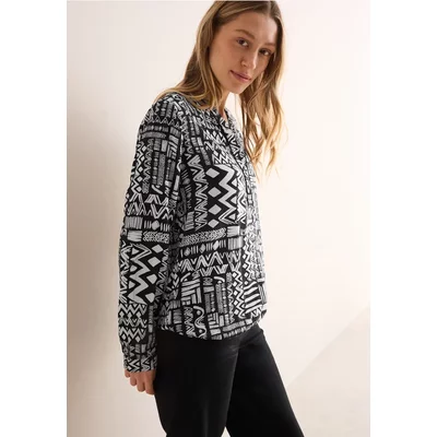 Deze gedessineerde blouse van CECIL voor dames heeft verschillende grafische patronen, waardoor het een opvallende toevoeging aan je look is. De blouse heeft een ronde hals met split, lange mouwen met een omslag en een elastische zoom voor een perfecte pasvorm. Deze damesblouse is gemaakt van zachte viscose en is daarom ook zeer comfortabel om te dragen.