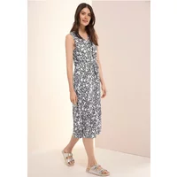 Deze mouwloze midi-jurk van CECIL voor dames heeft een luchtig model en een vrouwelijk volantdetail. De V-hals en het koord in de taille zorgen voor een flatterend silhouet. De zachte viscose maakt het de ideale metgezel op warme dagen.
