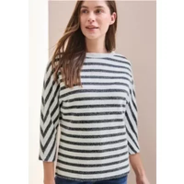 Het gestreepte verengaren shirt van CECIL voor dames is een gezellige blikvanger voor knusse looks. Het heeft een elastische zoom voor een perfecte pasvorm, een boothals en 3/4-mouwen. De materiaalmix met stretch zorgt voor een hoog draagcomfort.