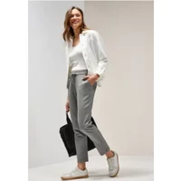 Deze seersucker broek van CECIL voor dames maakt indruk met zijn nonchalante pasvorm en luchtige textuur. De Mid Waist en Slim Legs zorgen voor een vrouwelijke pasvorm. De elastische tailleband met trekkoord maakt hem bijzonder comfortabel.