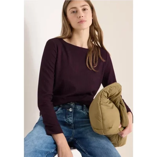 Cecil Dames Getextureerd shirt met lange mouwen in Rood Prijzen