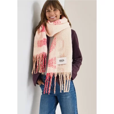 Deze CECIL sjaal voor dames voegt een stijlvol accent toe aan je outfit met zijn grafische patroon en modieuze franjes. De zachte, behaaglijke stof zorgt voor aangename warmte - perfect voor koude dagen met een modieuze flair.