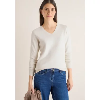 Met zijn zachte katoenmix en vrouwelijke V-hals is deze gebreide trui van CECIL voor dames een echte feelgood-favoriet. De zachte stof maakt hem bijzonder comfortabel om te dragen. Ideaal voor ontspannen looks met een stijlvolle touch.