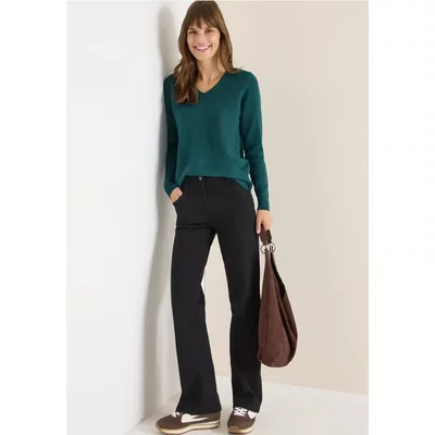 Met zijn zachte katoenmix en vrouwelijke V-hals is deze gebreide trui van CECIL voor dames een echte feelgood-favoriet. De zachte stof maakt hem bijzonder comfortabel om te dragen. Ideaal voor ontspannen looks met een stijlvolle touch.
