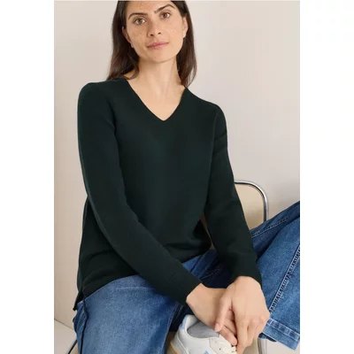 Met zijn zachte katoenmix en vrouwelijke V-hals is deze gebreide trui van CECIL voor dames een echte feelgood-favoriet. De zachte stof maakt hem bijzonder comfortabel om te dragen. Ideaal voor ontspannen looks met een stijlvolle touch.