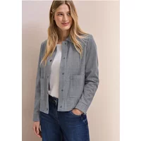 Deze jacquard blouson van CECIL voor dames heeft een overhemdkraag en modieuze gepatchte zakken. De knoopsluiting en lange mouwen met manchetten en knopen zorgen voor een stijlvolle look. De materiaalmix met stretch maakt het jack comfortabel en veelzijdig.