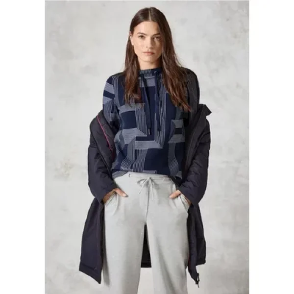 Dit overhemd met lange mouwen van CECIL voor dames is een stijlvolle metgezel. Het shirt heeft een opstaande kraag met een aantrekkoord en lange mouwen. Een grafisch patroon en de stretch katoenmix maken het ontwerp af.