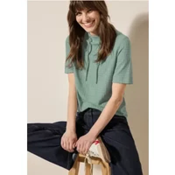 Dit CECIL Shirt voor dames heeft een fijn patroon in een burnout look. De kraag met trekkoord en de korte mouwen zorgen voor een ontspannen look. De zachte materiaalmix met stretch voelt bijzonder comfortabel aan.