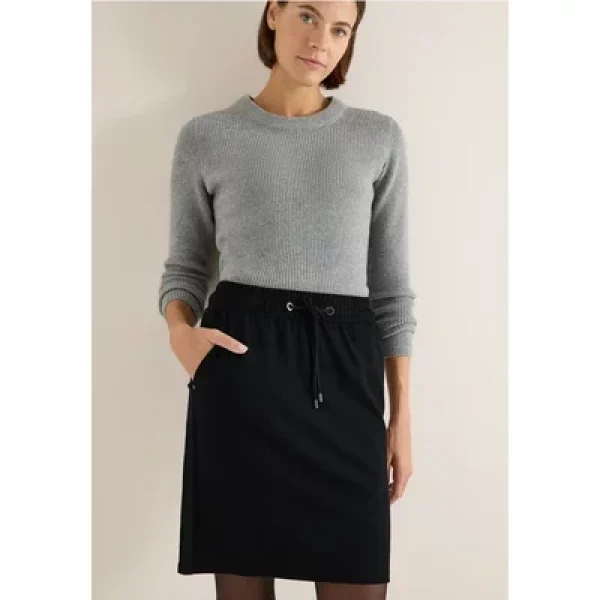 De joggingrok van CECIL voor dames heeft glitterband aan de zijkant en een sportieve look. De knielange jersey rok heeft een hoog draagcomfort dankzij de elastische tailleband met tunnelkoord en de viscosemix met stretch. De steekzakken maken het een praktisch alledaags stuk met een modieuze glinstering.