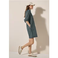 Deze knielange jurk in een effen kleur van CECIL voor dames is een modieuze metgezel voor je looks. Een overhemdkraag met decoratieve knoopsluiting, 3/4 mouwen en praktische steekzakken maken het tot een veelzijdig stuk. De katoenmix met stretch biedt je een comfortabele pasvorm.