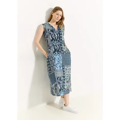 CECIL dames zomerjurk met patchworkprint, mouwloos, ronde hals met split en lint, licht getailleerd, tot op de knie, zachte viscose