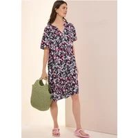 Deze knielange jurk van CECIL voor dames maakt indruk met zijn crêpestructuur en luchtige volants. De halsuitsnijding met split en de korte mouwen maken het vrouwelijke ontwerp compleet. De zachte viscose zorgt voor een hoog draagcomfort.