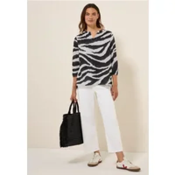 Deze lichtgewicht katoenen blouse van CECIL voor dames maakt indruk met zijn grafische patroon en luchtige gevoel. De gespleten hals en 3/4-mouwen maken de look compleet, terwijl zijsplitten aan de zoom casual details toevoegen.