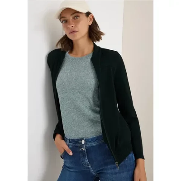 Dit lichtgewicht blousonjack van CECIL voor dames heeft een moderne opstaande kraag, ritssluiting en sportieve look. De hoogwaardige Cupro Touch-stof geeft het een zacht, vloeiend gevoel. Een stijlvolle metgezel voor het overgangsseizoen - comfortabel en trendy tegelijk.