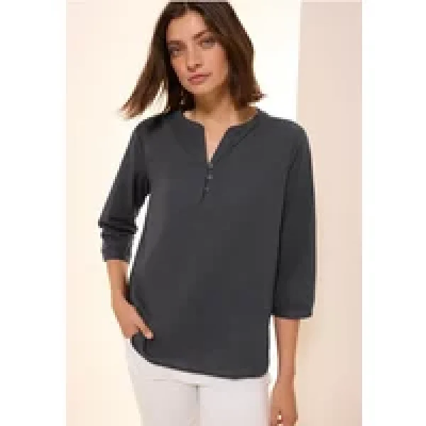 Deze lichtgewicht tuniek van CECIL voor dames heeft een halsopening met split en een decoratieve knoopsluiting. 3/4 mouwen met elastische boorden en een afgeronde zoom maken het een stijlvol stuk. Het is gemaakt van puur katoen en voelt comfortabel aan op de huid.